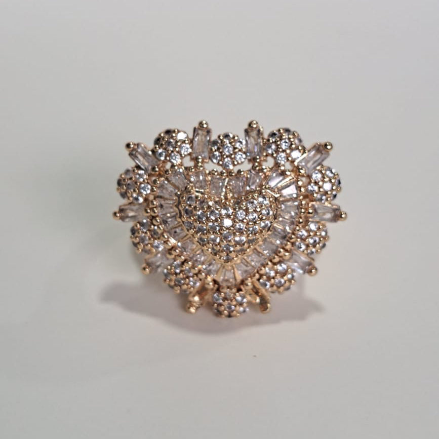 Anel Queen Coração Zircônias Dourado