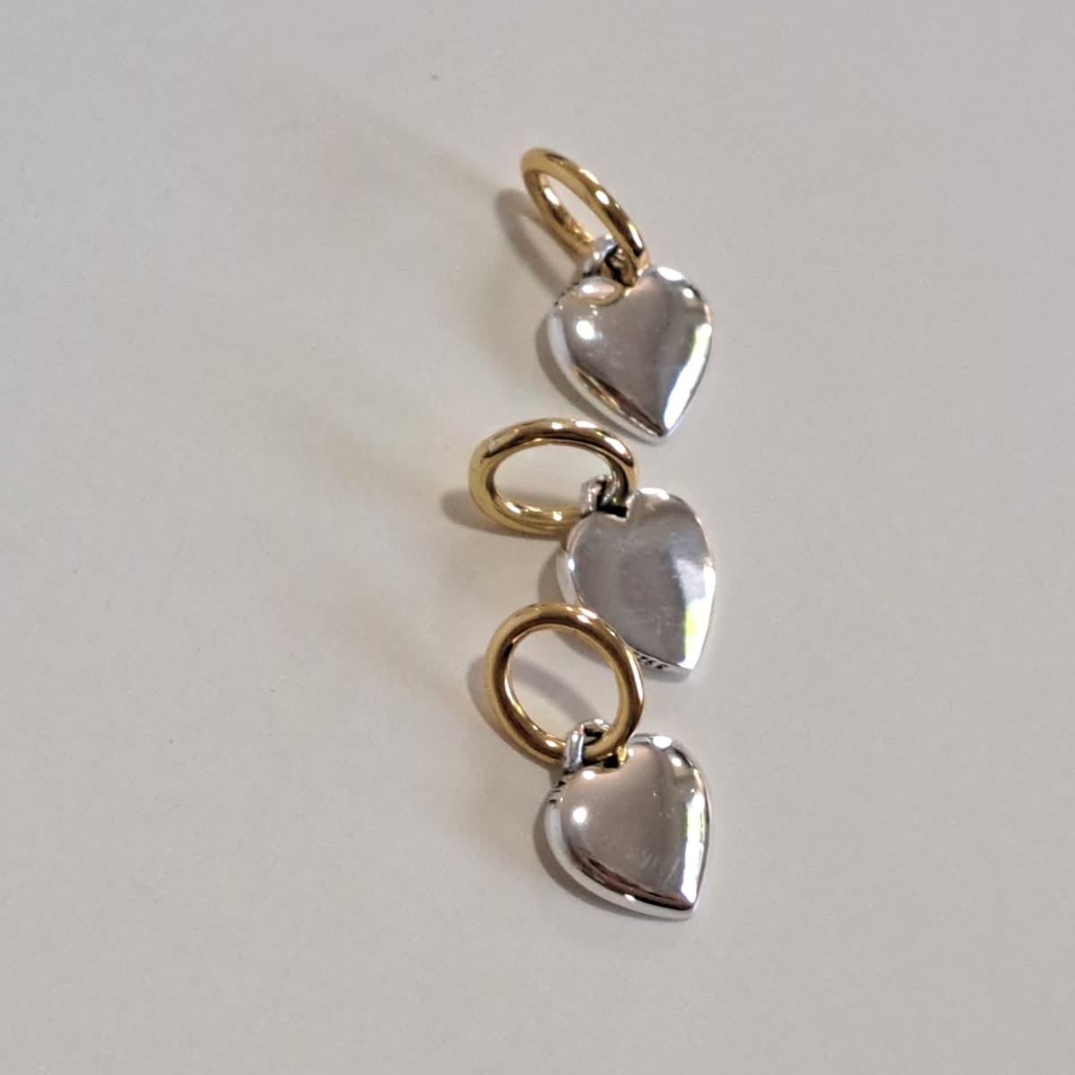 Este berloque da Coleção Dora combina o ouro com a prata 925, oferecendo durabilidade e um brilho sofisticado. Com três corações entrelaçados, simboliza união e afeto, ideal para compor pulseiras que expressem sentimentos especiais. Seu banho em ouro realça o design, garantindo um acabamento elegante e resistente ao desgaste diário. Uma peça versátil que adiciona charme e significado às suas joias.