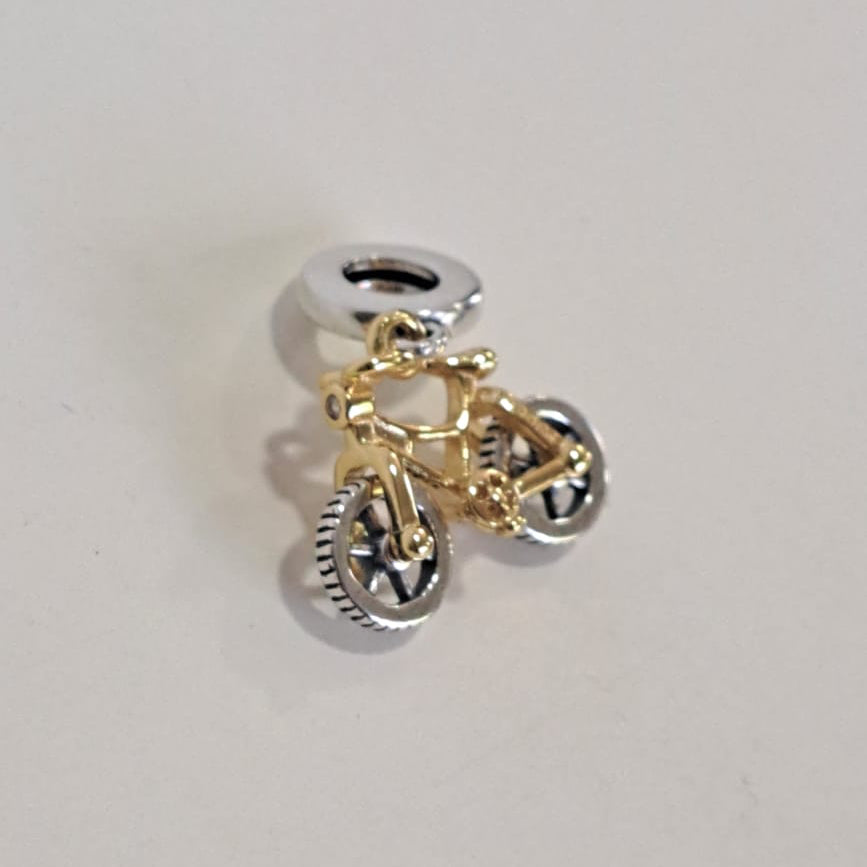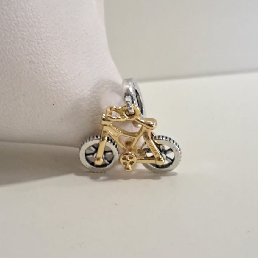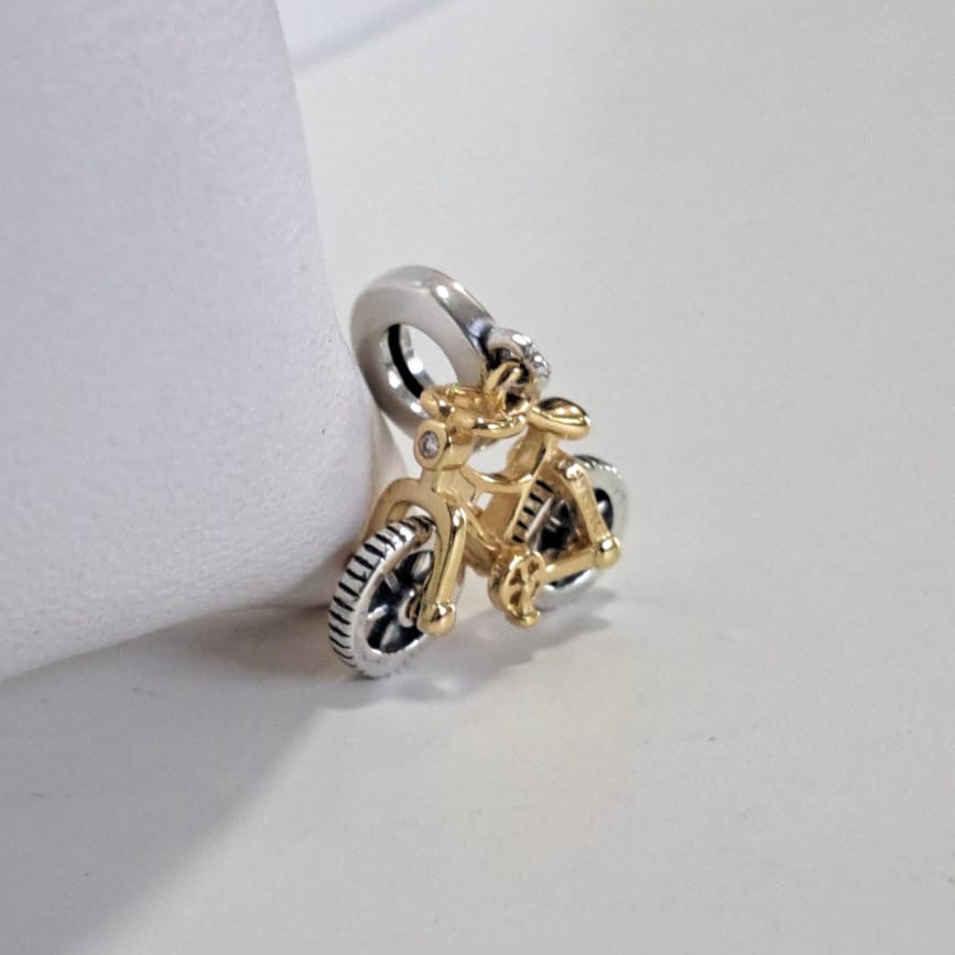 Este berloque da Coleção Dora traz o charme da bicicleta em prata com banho de ouro amarelo, conferindo sofisticação e delicadeza à sua pulseira. Sua combinação de materiais garante resistência aliada a um acabamento brilhante, perfeito para quem valoriza detalhes elegantes e um toque de originalidade na joia. Ideal para compor looks exclusivos e expressar personalidade com elegância.
