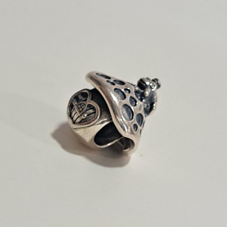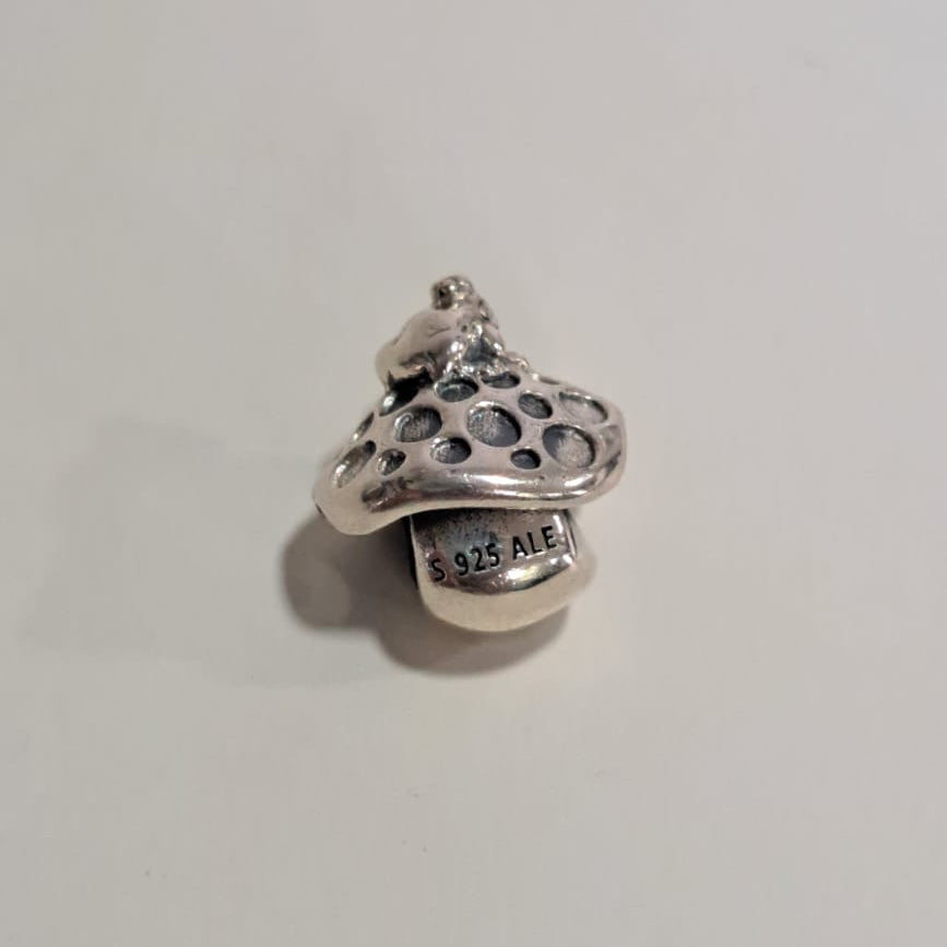 Berloque em prata 925 inspirado na icônica coleção Dora, apresentando um delicado cogumelo como destaque. Peça versátil que combina com pulseiras de miçangas, correntes e outros berloques, permitindo composições personalizadas. Confeccionado em prata esterlina de alta qualidade, garante durabilidade e brilho duradouro. Ideal para colecionadores e amantes de acessórios temáticos que buscam autenticidade e elegância em suas joias.