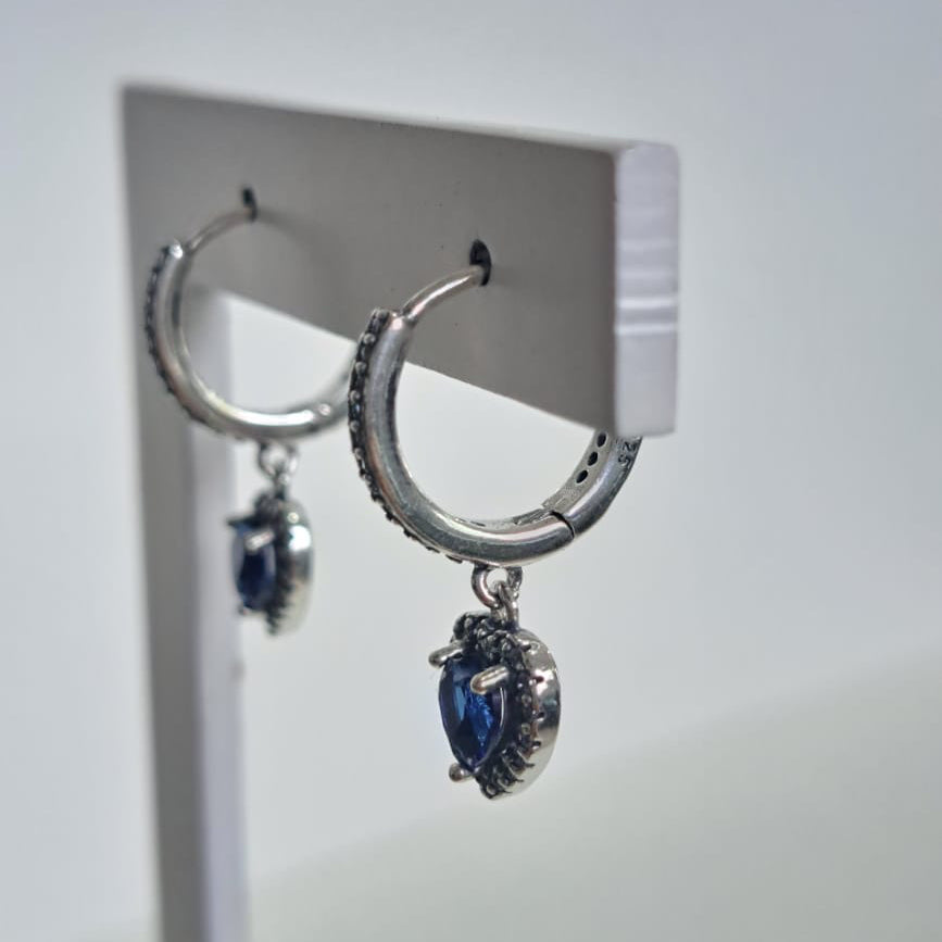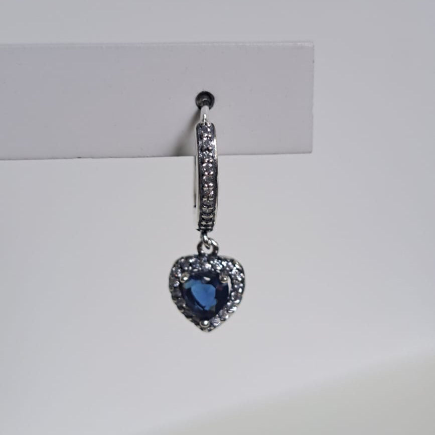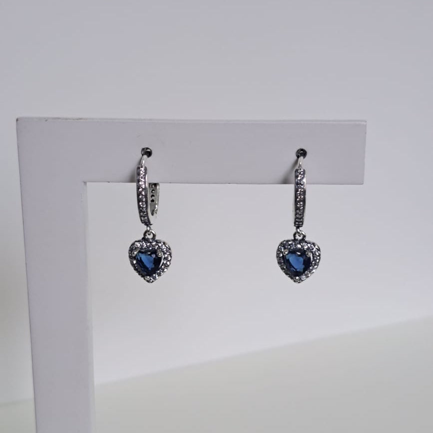 Brinco Argola Coleção Dora Coração Azul Cravejado