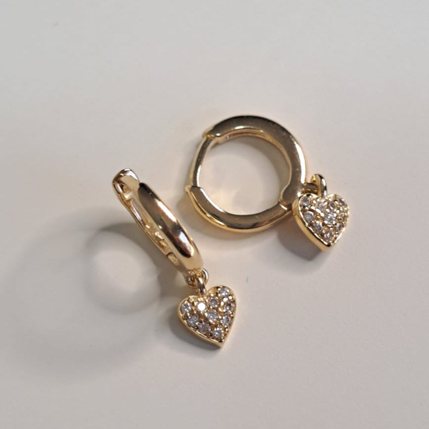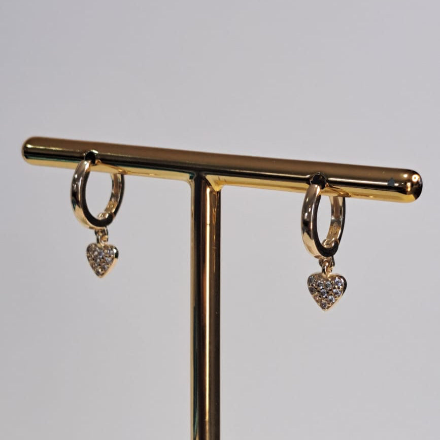 Brinco Infantil Pingente Coração Cravejado