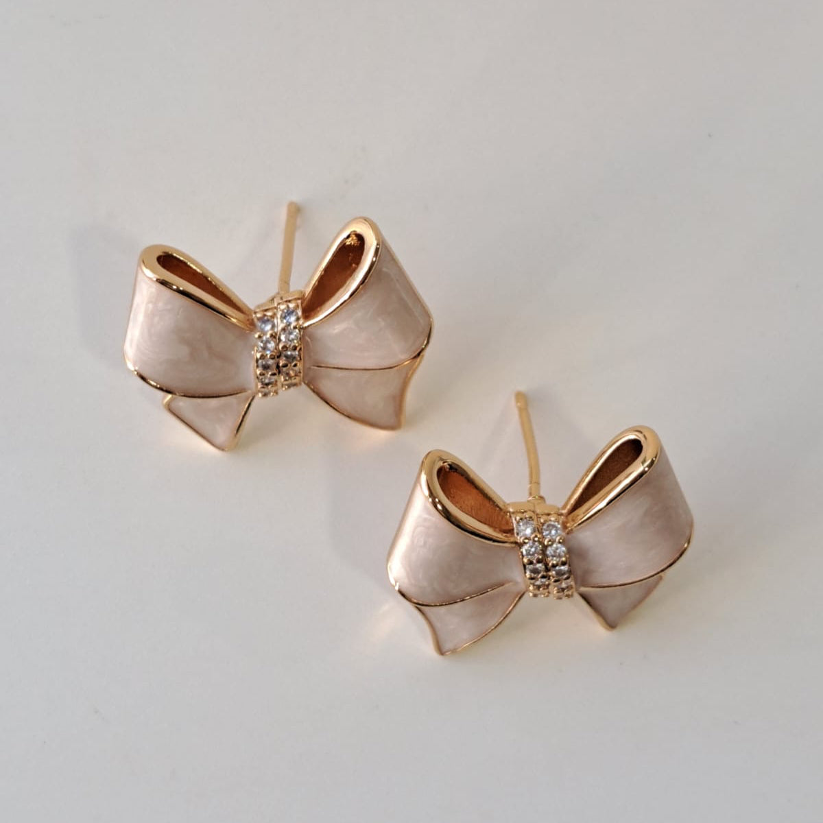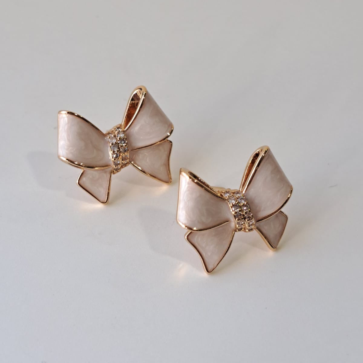 Brincos Laços Esmaltação Italiana Madrepérola e Zircônias