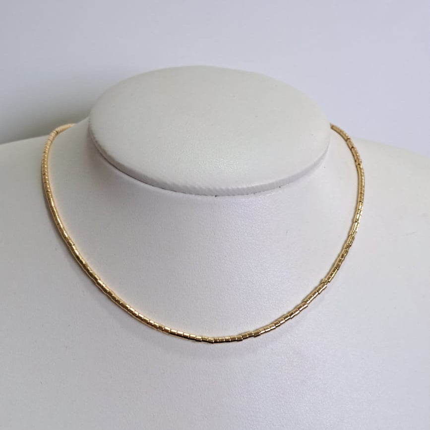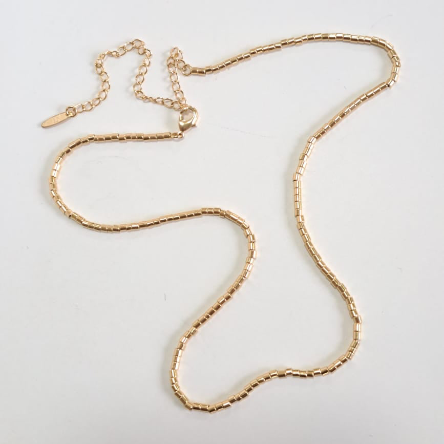 Colar em canutilho CD com design sofisticado e versátil. Peça confeccionada com miçangas cilíndricas que criam um efeito visual único e texturizado. Ideal para complementar looks do dia a dia ou ocasiões especiais, oferecendo elegância discreta. Material durável que mantém o brilho e a forma ao longo do tempo. Perfeito para quem busca acessórios com personalidade e qualidade.