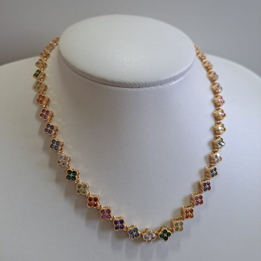 O Colar Flower Colors VC Dourado combina delicadeza e sofisticação com seu design floral colorido em acabamento dourado. Essa peça versátil valoriza qualquer look, oferecendo um toque de elegância e personalidade para o seu visual diário ou ocasiões especiais. Feito com materiais de alta qualidade, proporciona durabilidade sem perder o brilho e a beleza característica das semijoias refinadas.
