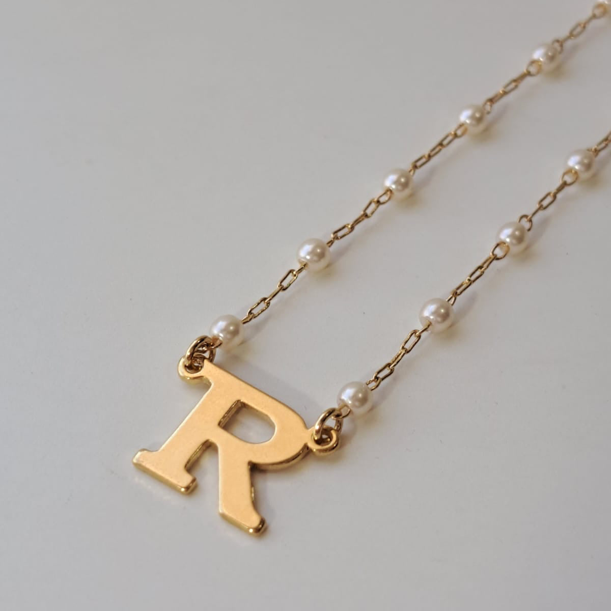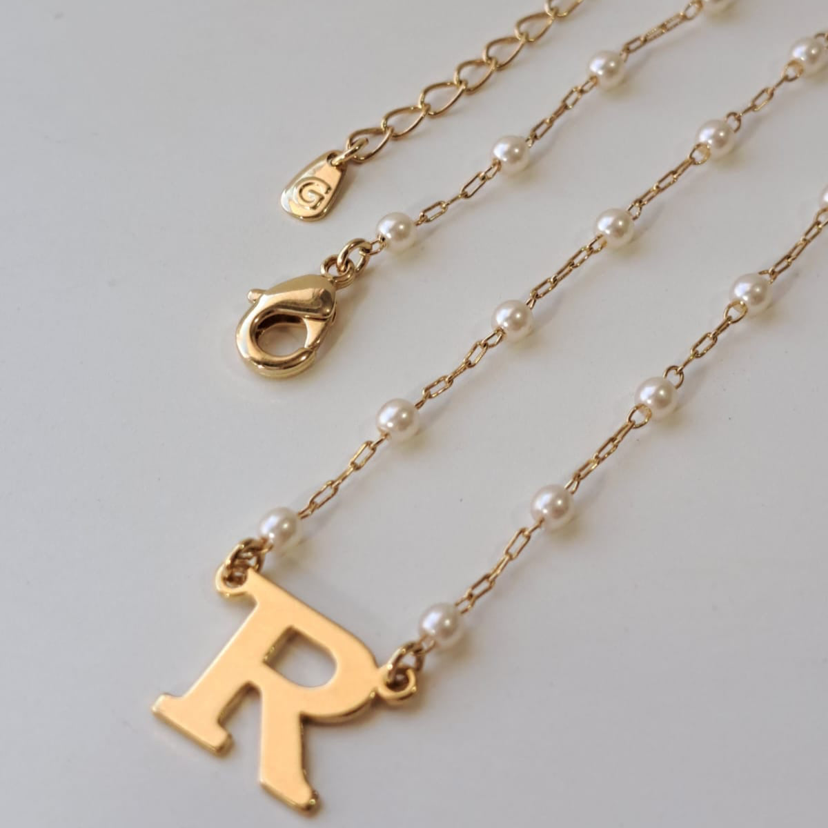 Este colar combina a elegância da letra inicial "R" com a delicadeza de uma pérola natural, resultando em uma peça sofisticada e atemporal. Ideal para uso diário ou ocasiões especiais, oferece um toque personalizado e clássico ao seu visual, destacando sua identidade com sutileza e bom gosto. Feito com materiais de alta qualidade, garante durabilidade e brilho duradouro.