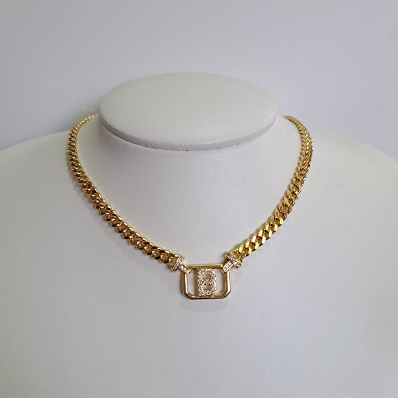 Colar em ouro com letra B cravejada em zircônias cúbicas, oferecendo brilho e elegância sofisticada. A letra em relevo proporciona destaque e personalidade ao look, enquanto o acabamento em ouro garante durabilidade e resistência ao desgaste. Peça versátil que combina com diversos estilos, ideal para quem busca um acessório refinado e significativo. Corrente ajustável para maior conforto e praticidade no dia a dia.