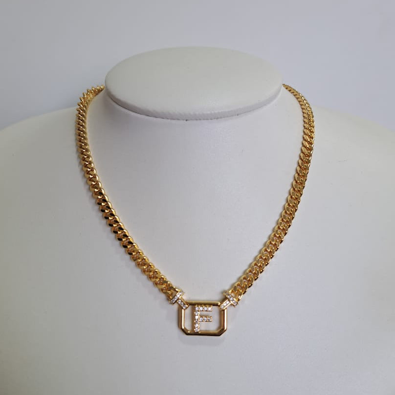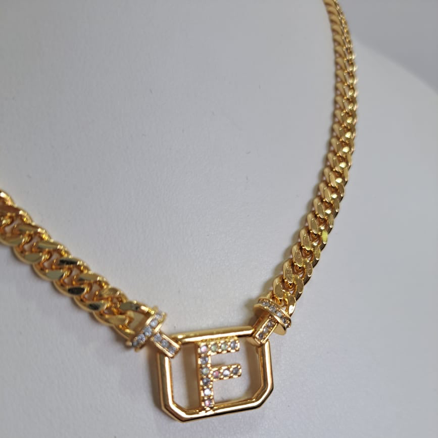 Colar em ouro com letra F cravejada em zircônias cúbicas, oferecendo brilho e elegância sofisticada. A letra inicial é um clássico atemporal que adiciona personalidade ao seu estilo. Ideal para uso diário ou ocasiões especiais, combina qualidade de acabamento com design minimalista. Corrente resistente e ajustável, garantindo conforto e durabilidade. Uma peça versátil que complementa qualquer guarda-roupa com refinamento.