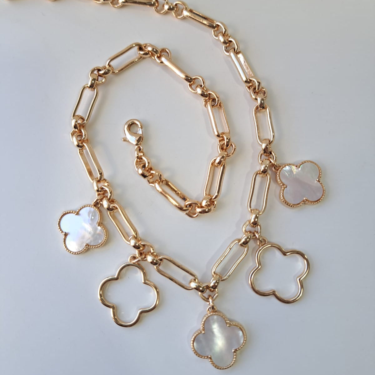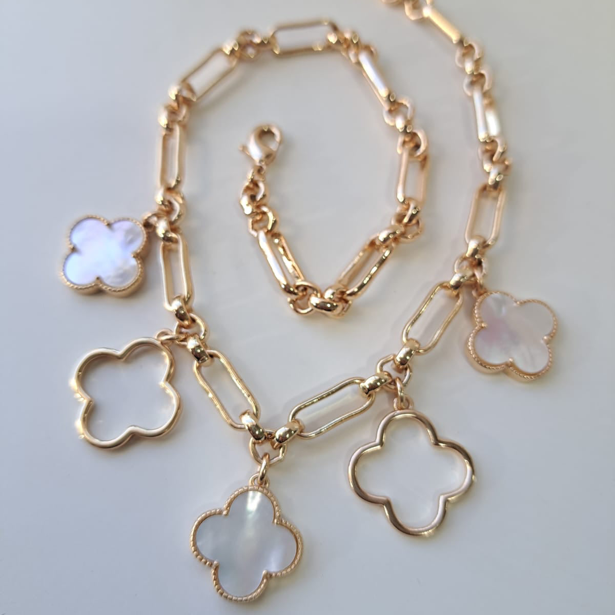 Este colar com elos e madrepérola combina elegância natural e design sofisticado. As peças de madrepérola conferem brilho suave e iridescente, valorizando qualquer look, enquanto os elos garantem resistência e conforto. Ideal para quem aprecia joias clássicas com um toque contemporâneo, este colar é versátil para ocasiões formais e uso diário.