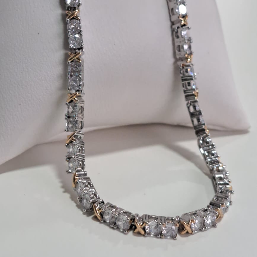O Colar Riviera X Ródio é uma peça sofisticada que combina design elegante com acabamento em ródio, garantindo maior durabilidade e resistência ao desgaste. Seu estilo clássico com pedras alinhadas oferece brilho sutil e modernidade, ideal para complementar looks sofisticados em ocasiões especiais ou no dia a dia. Uma joia versátil que valoriza qualquer produção com requinte e durabilidade superior.