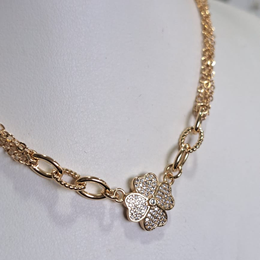 Colar Trevo Cravejado CD