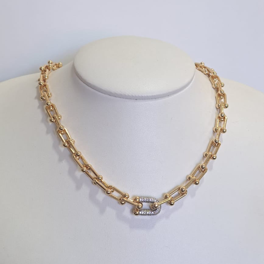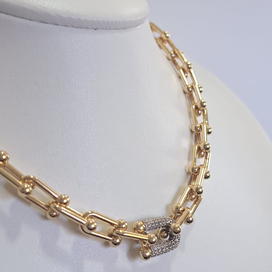 Colar em formato U com cravejamento em strass, peça versátil que combina elegância e sofisticação. O design moderno e minimalista permite uso em diversas ocasiões, desde o dia a dia até eventos especiais. Os cristais cravejados adicionam brilho discreto e refinado ao seu visual. Ideal para quem busca acessórios que equilibram estilo contemporâneo com detalhes luxuosos. Perfeito para presentear ou complementar sua coleção pessoal.