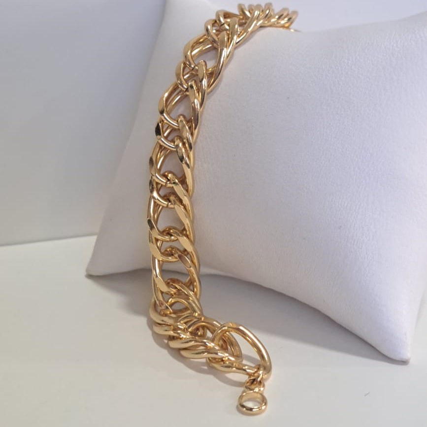 Pulseira em elos com acabamento CD, peça versátil que combina elegância e praticidade. Seu design clássico permite uso em diversas ocasiões, desde o dia a dia até eventos especiais. Os elos proporcionam movimento natural no pulso, garantindo conforto ao usar. Ideal para quem busca uma semijoia de qualidade que resista ao tempo e mantenha seu brilho. Perfeita para presentear ou complementar sua coleção pessoal com estilo atemporal.